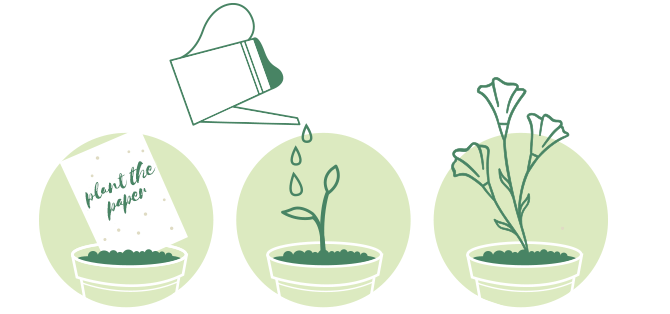 Once your plantable card begins to sprout, continue to keep the paper moist, being careful not to overwater. Once a plant appears, continue to water as needed. Remember each plant has different needs, but every plant will require some sunlight to grow.